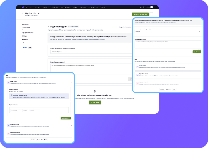 With beautiful templates and an intuitive editor, you can create a standout online presence that reflects your brand and drives engagement. Embed Campaign Monitor signup forms into your new website to grow your lists and then send campaigns to an already engaged audience – all from one place.